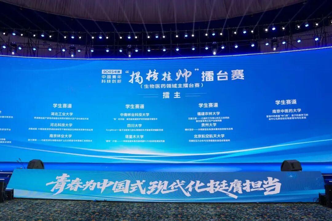 9月27日—29日,2025年度中国青年科技创新“揭榜挂帅”擂台赛“生物医药领域”终审擂台赛在内蒙古呼和浩特成功举办。本次擂台赛聚焦生物医药科技前沿,围绕动物疫苗、生物发酵、合成生物学等大方向发布15个榜题,精准覆盖“生物医药领域”多项技术瓶颈,吸引279支团队,800余名学生及青年科技人才参加,为服务国家战略需求,推动我国生物医药产业高质量发展注入青春动能。我校药学院推报项目在本次大赛中斩获擂主(所在榜单特等奖中成绩第一名)、二等奖、三等奖各1项,创历史最好成绩。