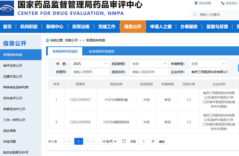 近日,国家药品监督管理局药审中心发布公告许可,我校与南京三同医药科技有限公司、江苏省中医药研究院、南京市中医院联合研发的全球首款针对家族性腺瘤性息肉病(FAP)的1.2类创新中药“HQY总黄酮胶囊”及其原料药获药物临床试验批准(受理号:CXZ2500056、CXZ2500057),标志着该项目正式迈入I期临床试验阶段。
