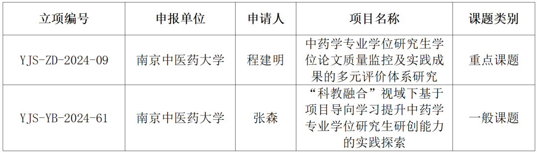 近日,中国学位与研究生教育学会中医、中药学专业学位委员会、全国中医药高等教育学会研究生教育研究会公布了2024年全国中医药研究生教育研究课题立项名单,我院获批立项2024年全国中医药研究生教育研究课题重点课题1项、一般课题1项。