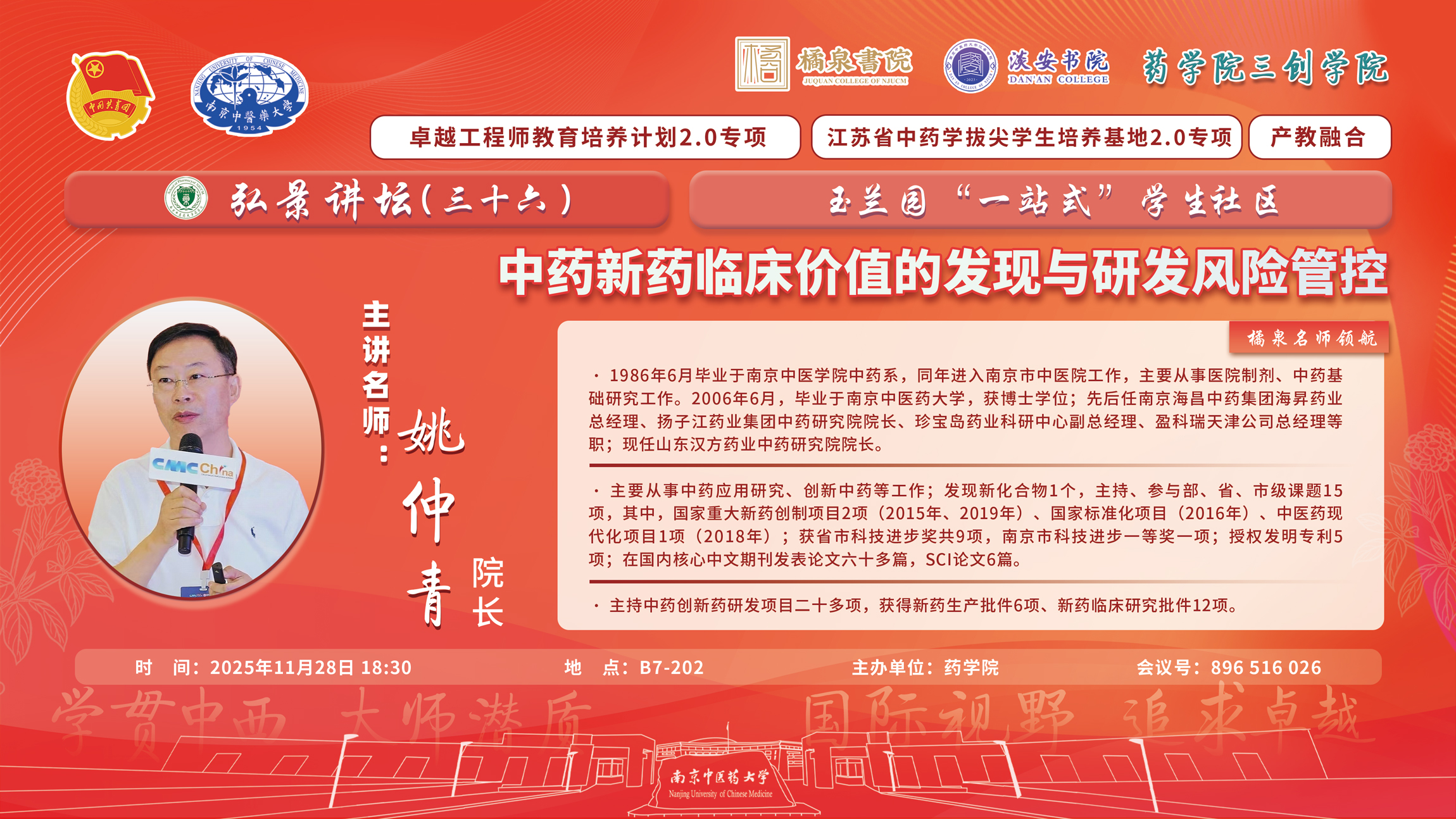 弘景讲坛(三十六)中药新药临床价值的发现与研发风险管控