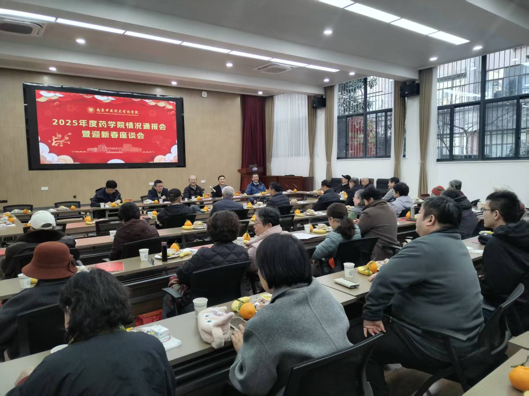 岁序更替,华章日新;情系桑榆,暖意融融。为向离退休老同志通报学院发展成果,共话学院未来蓝图,1月15日下午,药学院在汉中门校区六号楼多媒体中心隆重召开离退休老同志情况通报会暨迎新春座谈会。学院党委书记曹凯、执行院长赵明及领导班子成员、相关科室负责人与离退休老同志们欢聚一堂,共忆往昔岁月,共叙发展情谊,共迎新春佳节。